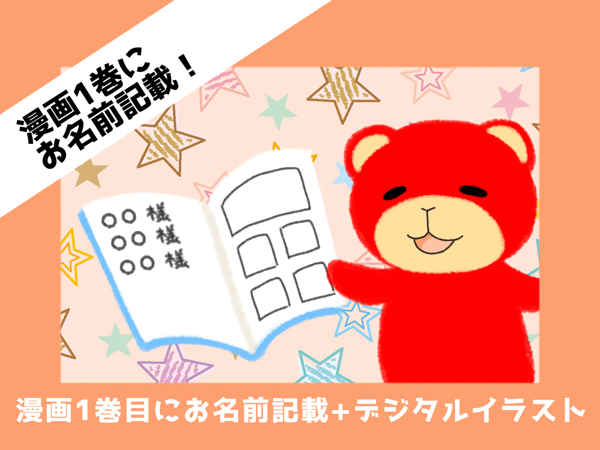 漫画の全巻の奥付にお名前の(ニックネーム可)記載がされるプランです。