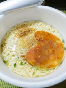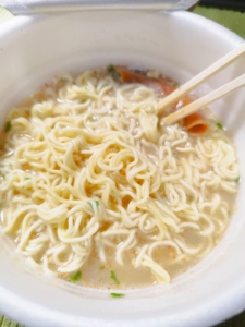 カップのフタを開けると、ふわりと香る豚骨のやさしい匂い。