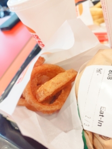 最初は基本のワッパーだろ!と、ワッパーとオニオンリング、スプライトを注文しました。