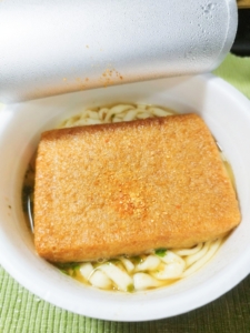 前に食べた“最強どん兵衛 鴨だしそば”があまりにも美味しくて、すっかり虜になってしまったベアたんは、とうとう気になっていた「最強どん兵衛 きつねうどん」を開封してみました。