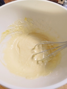 - ボウルにケーキの材料を入れ、混ぜ合わせます。