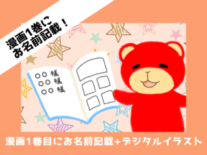 マンガの第一巻の奥付にお名前掲載と、デジタルイラストが届くプランです。