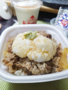 【すき家】初めての『わさび山かけ牛丼』と『Sukiシェイク塩バターキャラメル』にほっと一息・・・