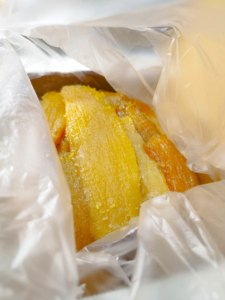 ねっとり、しっとり、黄金色に輝く干し芋たち。