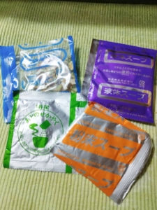 かやく、あとのせかやく、粉末スープに液体スープです。